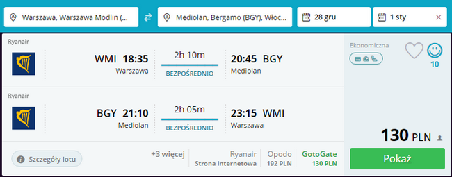 Kliknij i zarezerwuj loty z Warszawy Modlin do Mediolanu Bergamo i z powrotem: