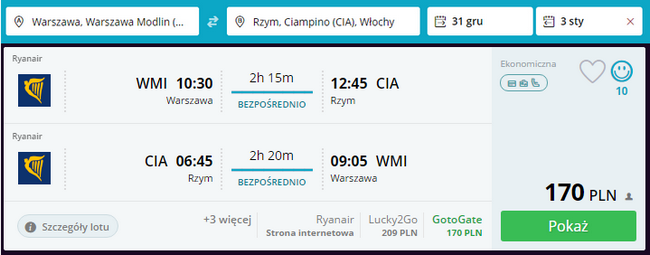 Kliknij i zarezerwuj loty z Warszawy Modlin do Rzymu i z powrotem:
