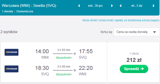 Kliknij i zarezerwuj loty z Warszawy Modlin do Sewilli i z powrotem: