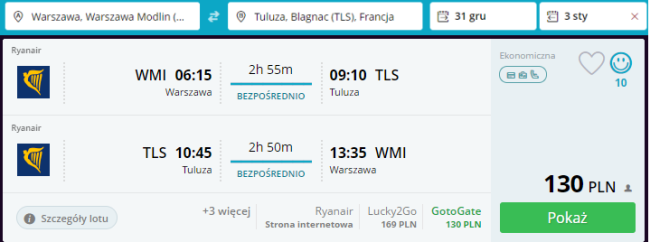 Kliknij i zarezerwuj loty z Warszawy Modlin do Tuluzy i z powrotem: