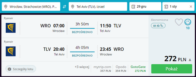 Kliknij i zarezerwuj loty z Wrocławia do Tel Awiwu i z powrotem: