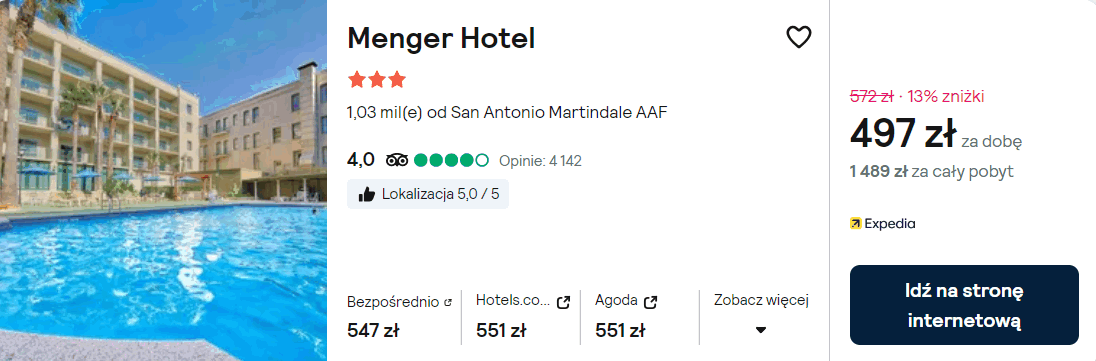 W San Antonio postaw na noclegi w 3* hotelu Menger z odkrytym basenem. Klimatyzacja, telewizor, lodówka oraz zestaw do parzenia kawy lub herbaty – to znajdziesz na wyposażeniu pokoju.
