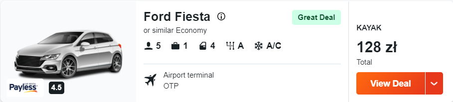Zwiedzanie rumuńskiej części wybrzeża Morza Czarnego ułatwi wam wypożyczony samochód. Jest to najwygodniejszy oraz najtańszy sposób, aby dostać się do wschodniej części kraju. Wybrałam dla was wygodny samochód marki Ford Fiesta (lub auto zbliżonej klasy).