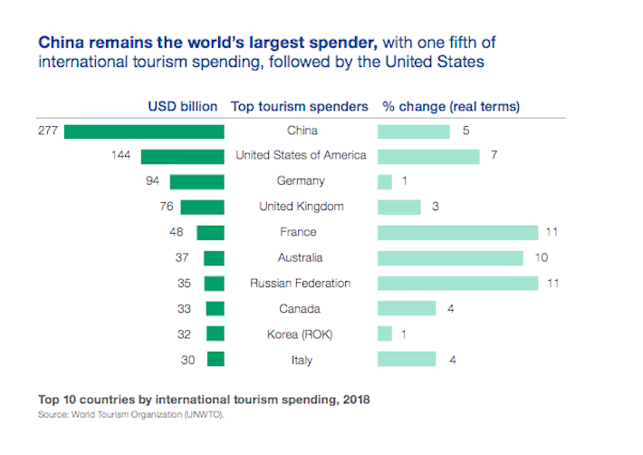 W tym kontekście prawdziwym fenomenem są Chińczycy, którzy od kilku lat nie tylko podróżują jak szaleni, ale też wydają ogromne kwoty pieniędzy. Według wyliczeń UNWTO – w zeszłym roku było to aż 277 mld USD. Dlaczego? Bo oprócz wydatków typowo turystycznych, na wakacjach robią oni ogromne zakupy – kupują elektronikę, ale też ubrania czy torebki luksusowych marek. Chińczycy stanowią tak ważną pozycję w bilansach firm, że często takie marki jak Prada, Burberry czy Louis Vuitton wspominają o nich w swoich raportach finansowych, wskazując na przyczyny spadków lub wzrostów sprzedaży.