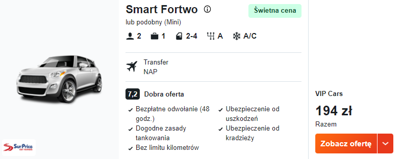 Samochód od 194 PLN/pobyt