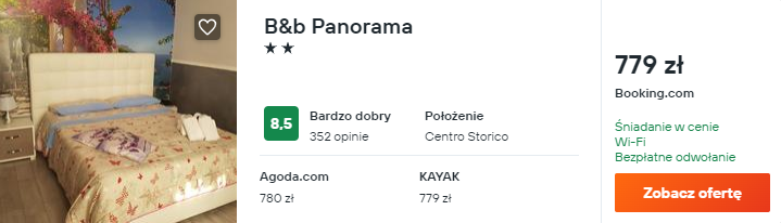 Rekomenduję zatrzymać się w centrum miasta, w pensjonacie B&b Panorama. Obiekt cieszy się bardzo dobrymi opiniami dotychczasowych gości, a na idealny początek dnia otrzymacie tam śniadanie wliczone w cenę zakwaterowania.