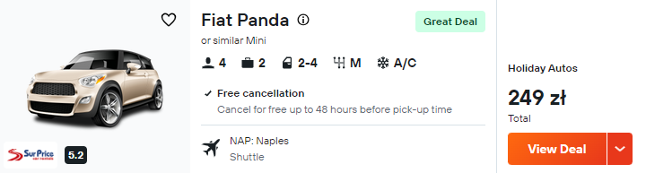 Chcecie zwiedzić więcej – na przykład wspaniałe wybrzeże Amalfi? Przyda się do tego wypożyczony samochód. Najlepiej będzie wynająć go tuż po wylądowaniu we Włoszech.