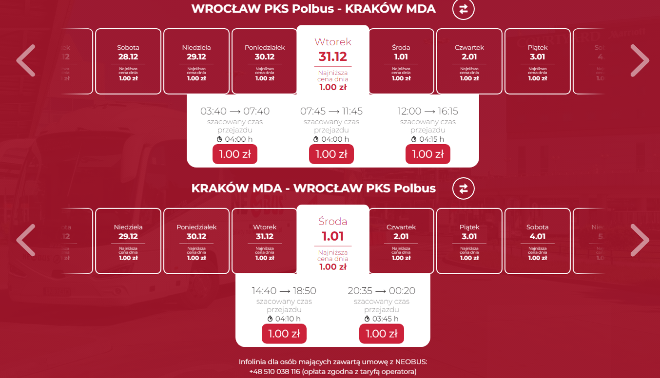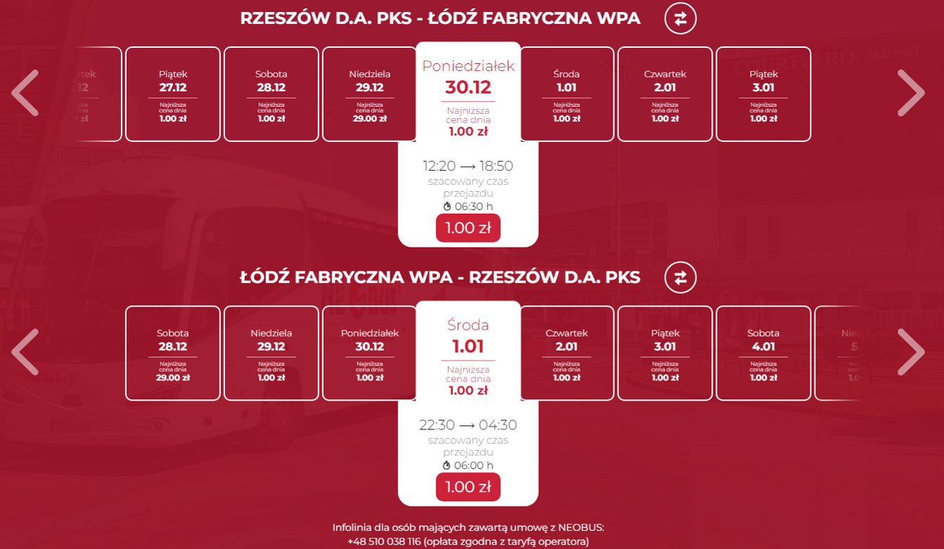 Zarezerwuj bilety NEOBUS w grudniu 2024 roku oraz styczniu 2025 roku od 1 PLN >>