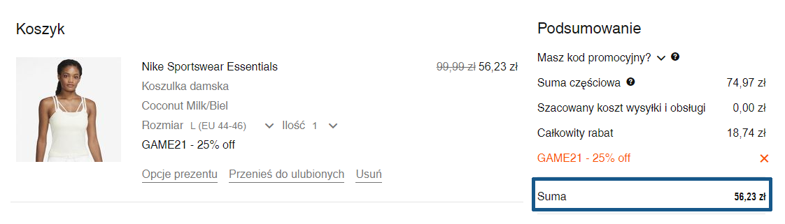 W podróż, do miejskiej eksploracji lub po prostu codziennego użytku – Nike to marka, której nie trzeba nikomu przedstawiać. Wybierzcie dla siebie nowe modele obuwia lub odzieży w okazyjnych cenach i skorzystajcie z aktualnie trwającej wyprzedaży, używając kodu zniżkowego GAME21.