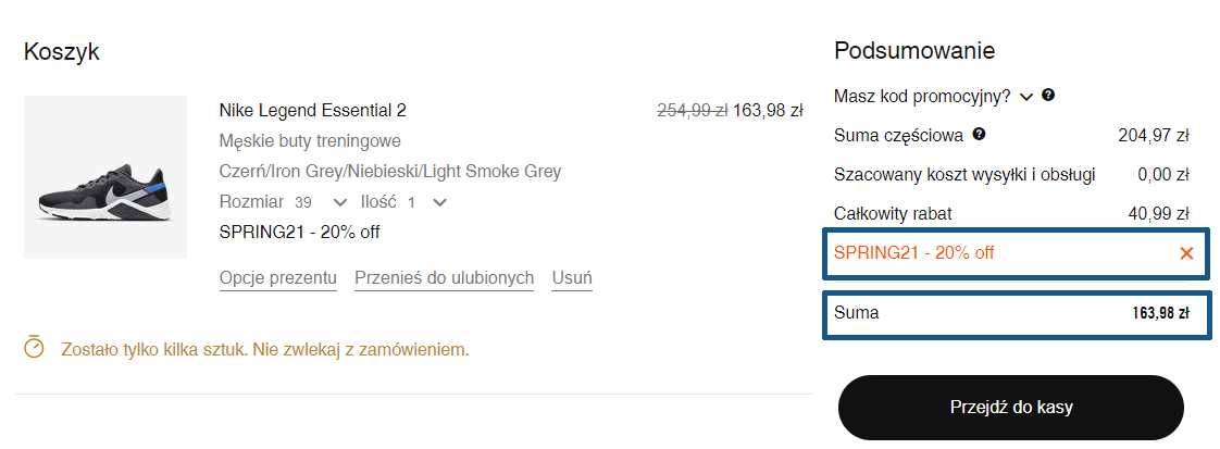 Buty w promocyjnych cenach kupicie w oficjalnym sklepie internetowym Nike.com. Dostępnych jest wiele modeli i rozmiarów, zarówno dla pań, jak i dla panów. Aby otrzymać dodatkowe 20 proc. rabatu (również na egzemplarze z działu wyprzedaży) wystarczy, że w trakcie składania zamówienia użyjecie kodu zniżkowego SPRING21.