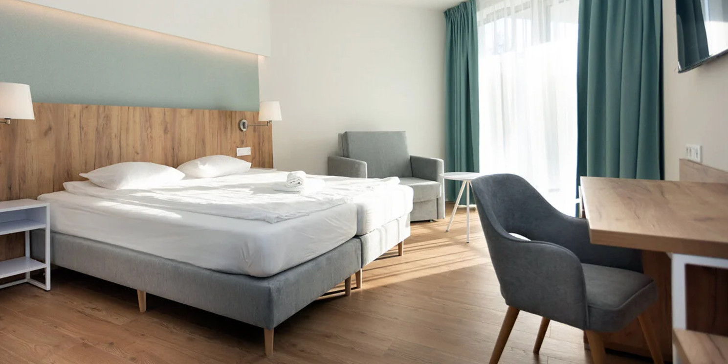 W cenie otrzymasz noclegi w komfortowo urządzonym pokoju oraz codzienne śniadania i obiadokolacje w formie bufetów. W pakiecie otrzymasz możliwość korzystania sali zabaw dla dzieci oraz ze strefy saun i kompleksu basenów.