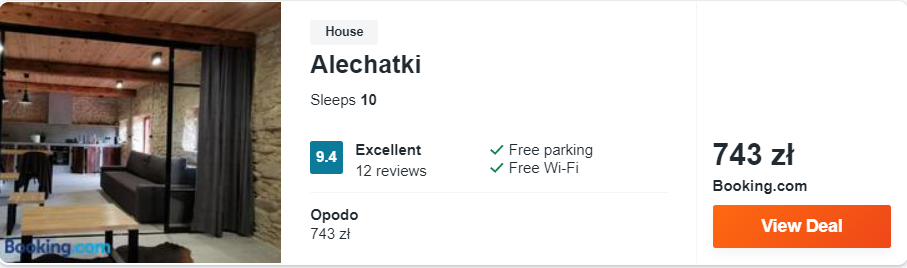 Wszystkie zebrane przeze mnie obiekty cieszą się sporą popularnością wśród podróżnych i mogą pochwalić się wysoką średnią ocen, wynikającą z wielu opinii i recenzji, wystawionych przez dotychczasowych gości. W każdym z nich znajdziecie na wyposażeniu aneks kuchenny, salon z miejscem do relaksu i rozkładaną sofą, minimum jedną sypialnię oraz jedną łazienkę z prysznicem. We większości zapewniony będziecie mieli także dostęp do sieci WiFi.