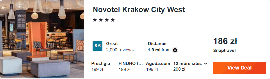 Na początek Kraków i oferta pobytu w 4* hotelu Novotel Kraków City West, który znajduje się w odległosci ok. 15 minutowego spokojnego spaceru od centrum starego miasta. Na miejscu będziecie mogli korzystać z krytego basenu oraz dostępu do sieci WiFi.