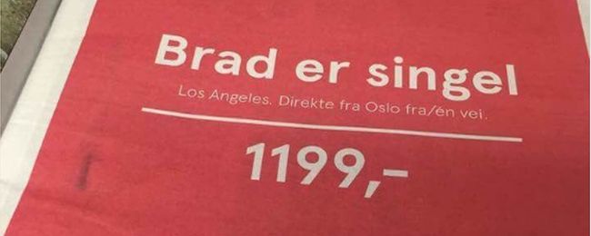 W piątek w kilku brytyjskich i norweskich dziennikach pojawiły się wielkie reklamy z krótkim hasłem „Brad jest singlem” i promocyjnymi cenami na loty z Oslo do Los Angeles.