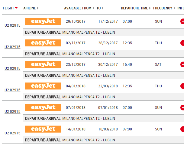 Dobre wieści płyną do nas od easyJet. Jak informuje mediolańskie lotnisko Malpensa przewoźnik połączy Lublin ze stolicą Lombardii. Nowa trasa wystartuje 29 października, a loty odbywać się będą dwa razy w tygodniu: w czwartki oraz niedziele, a w okresie świątecznym dodatkowo również w soboty. Połączenie będzie wykonywane na Airbusach A320. Bilety nie pojawiły się jeszcze w systemie rezerwacyjnym przewoźnika. Jak tylko to nastąpi, natychmiast Was o tym poinformujemy.