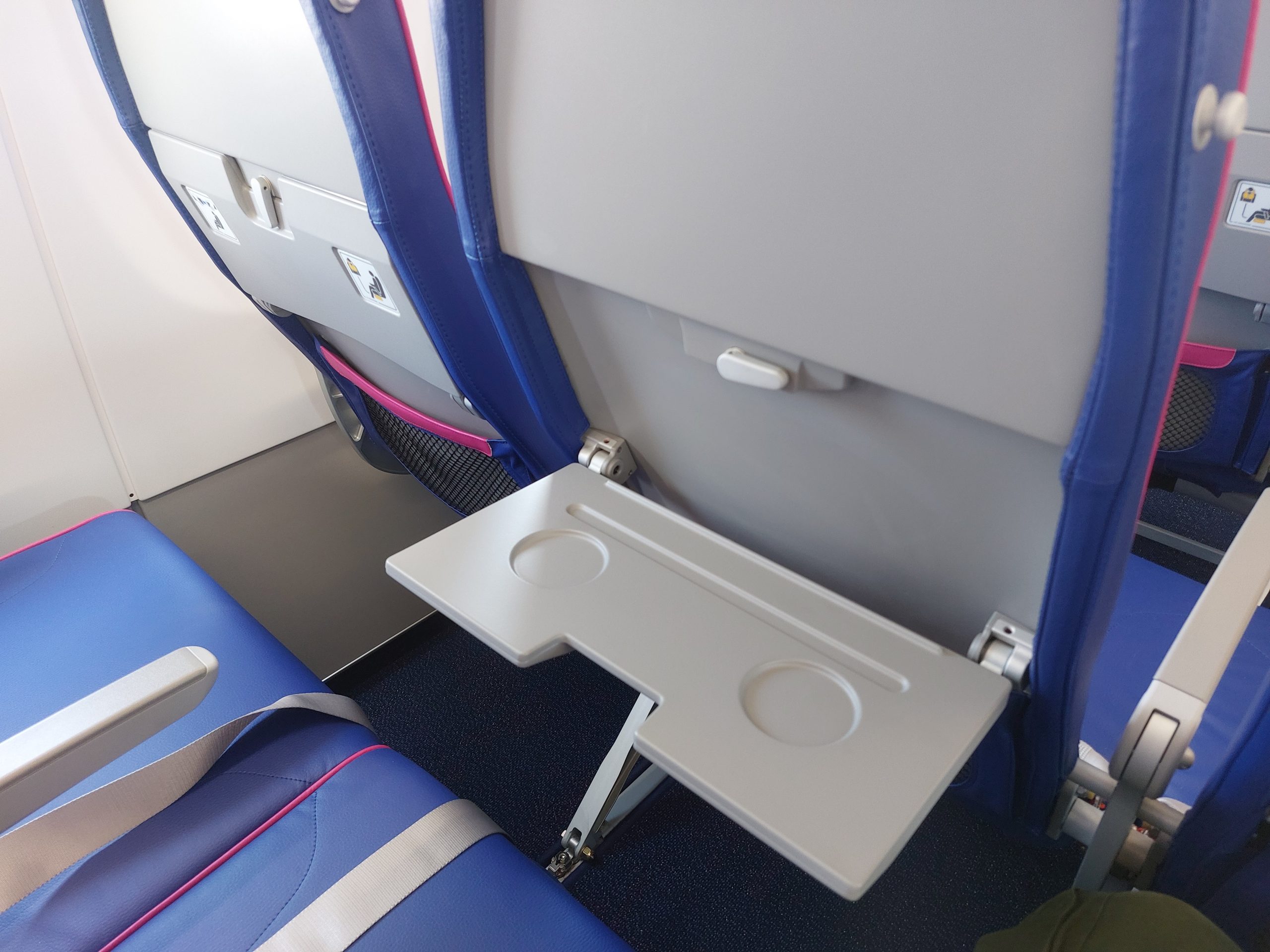 Wnętrze, które nie różni się właściwie od Airbusa A321neo, można odczytywać jako zaletę, ale z punktu widzenia pasażera ma jedną dużą wadę. Bo choć w stolikach mamy na przykład specjalne wcięcie, w które można wygodnie włożyć tablet czy telefon i pooglądać sobie np. wcześniej ściągnięty film, to dużym problemem może być choćby brak jakichkolwiek gniazdek, dzięki którym można podładować swoją elektronikę w czasie lotu. A jak połączymy to z faktem, że na pokładzie samolotów Wizz Aira obowiązuje (przynajmniej oficjalnie) zakaz korzystania z powerbanków, to sytuacja robi się naprawdę nieciekawa. Choć oczywiście wszystko zależy od punktu widzenia, bo dłuższy lot można spożytkować na drzemkę lub dobrą lekturę.