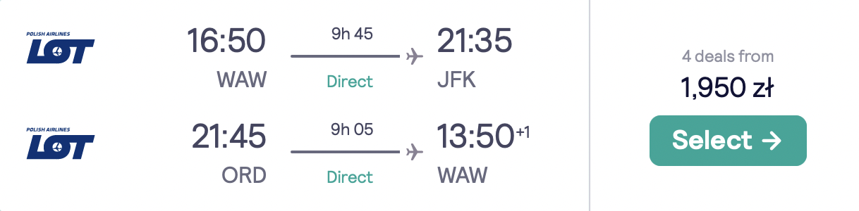 Podróż do Stanów Zjednoczonych rozpoczniesz 16 marca przelotem ze stołecznego lotniska im. Chopina do Nowego Jorku. Natomiast do stolicy polski wrócisz z Chicago 25 marca. W obie strony polecisz bezpośrednio na pokładach samolotów PLL LOT.