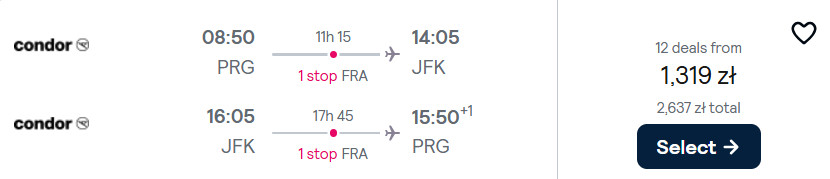 Do Nowego Jorku polecisz z Berlina lub Pragi w maju. W obie strony podróżować będziesz liniami Condor oraz Lufthansa z wygodnymi przesiadkami we Frankfurcie.