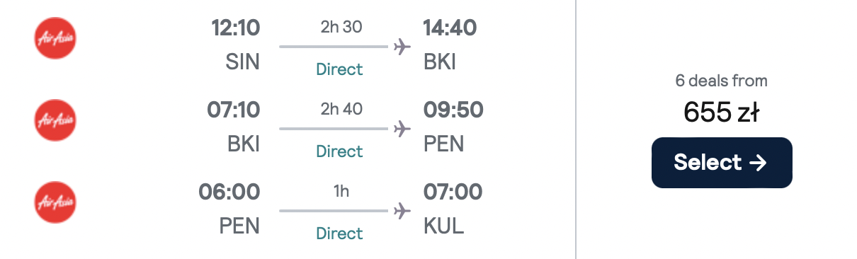 Następnie zarezerwuj bilety na trasie Singapur-Kota Kinabalu-Penang-Kuala Lumpur linią Air Asia.