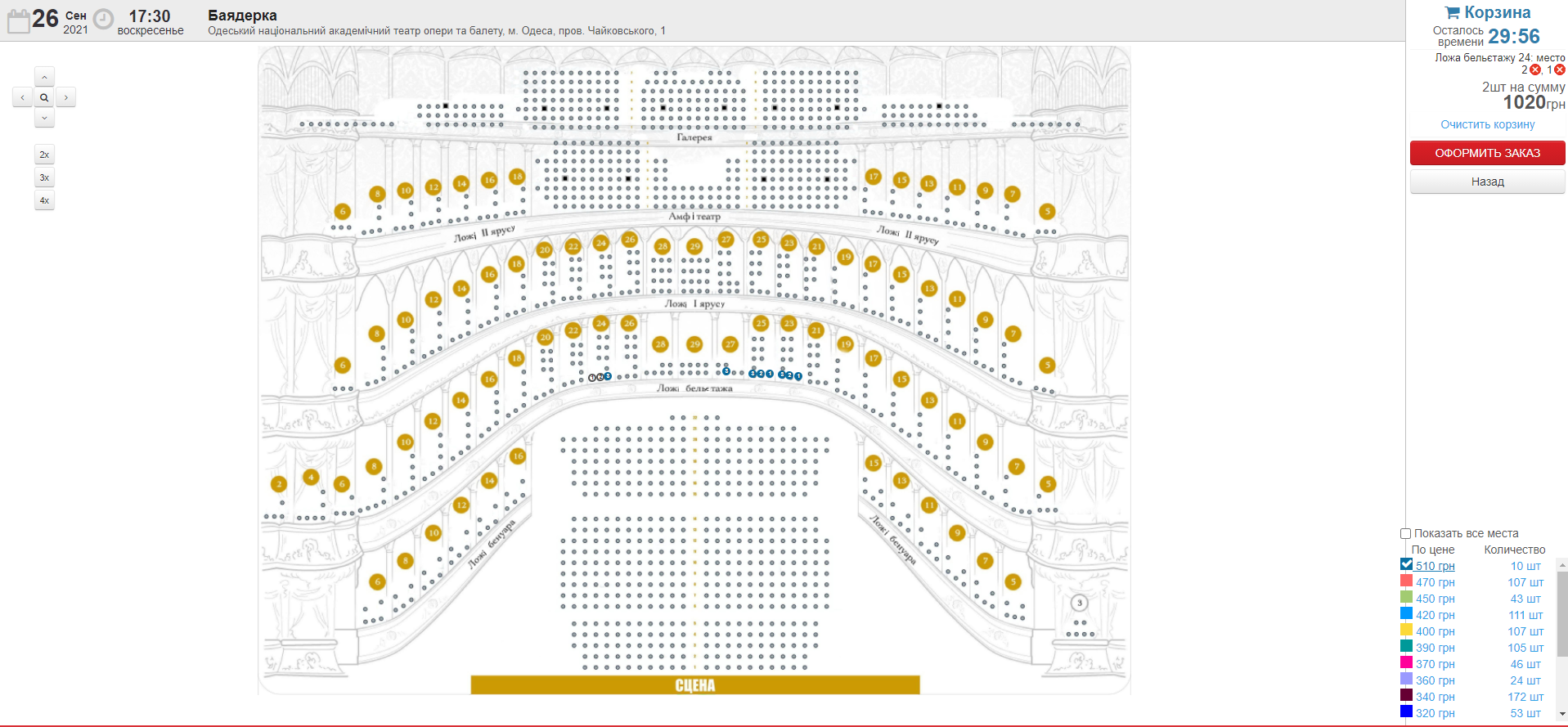 Niedzielnego wieczoru w Teatrze Opery i Baletu w Odessie wystawiony zostanie balet La Bayadère z muzyką legendarnego kompozytora Ludwiga Minkusa. Spektakl rozpocznie się o 18:30, a najtańsze bilety kupicie już za… 50 UAH (około 7 PLN). Zachęcam was jednak do skorzystania z okazji i wybrania dla siebie innych miejsc – na przykład na balkonie w loży na 1 piętrze. To najlepsze (i najdroższe) miejsca, nie obawiajcie się jednak – bilety kosztują 510 UAH, czyli ok 73 PLN.