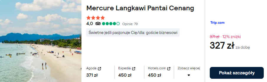 Na Langkawi rekomenduję zakwaterowanie w pobliżu najpopularniejszej plaży na wyspie. Wybierz 4* hotel znanej sieci Mercure Langkawi Pantai Cenang.