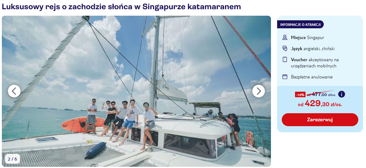 Wybierz się w niezapomniany rejs katamaranem o zachodzie słońca! Będzie to doskonała okazja, by podziwiać panoramę Singapuru.