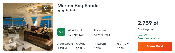Na koniec propozycja dla najbardziej wymagających podróżnych. W Singapurze zatrzymaj się w hotelu, który stał się ikoną tego miasta – w luksusowym 5* Marina Bay Sands.