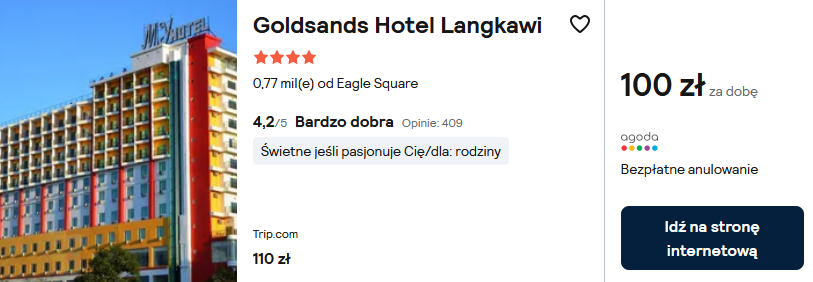 Na Langkawi wybierz 4* hotel Goldsands. Obiekt znajduje się bezpośrednio przy plaży i oferuje swoim gościom basen, strefę relaksu i komfortowo urządzone pokoje.