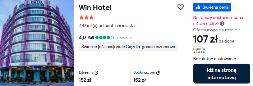 Natomiast na Borneo rekomenduję zakwaterowanie w 3* hotelu Win. Będzie to dobra baza wypadowa do zwiedzania wyspy.