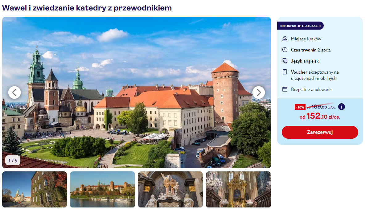 Atrakcje 152 PLN/osoba
