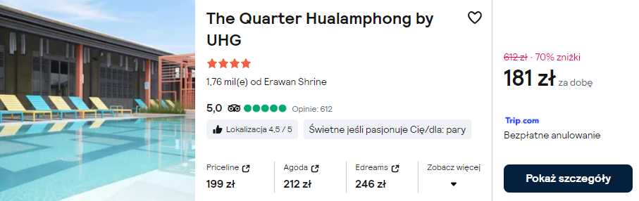 W Bangkoku zatrzymaj się w 4* hotelu The Quarter Hualamphong by UHG. Szybko zregenerujesz się tam po długiej podróży i nabierzesz sił na dalsze zwiedzanie.