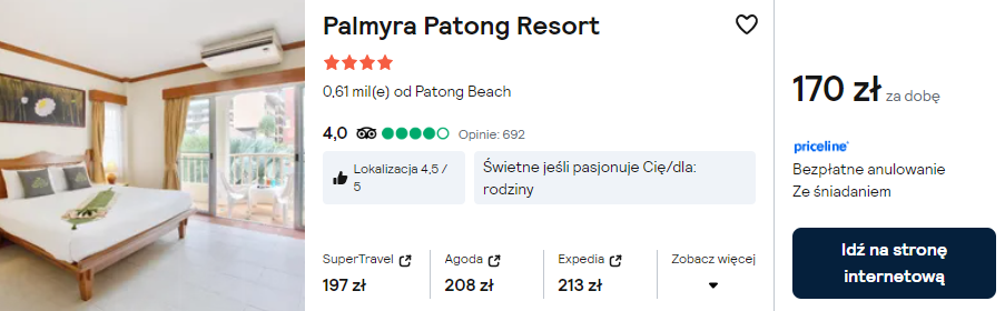 Na Phuket wybierz noclegi w pobliżu jednej z najbardziej rozrywkowych plaż na wyspie. W 4* hotelu Palmyra Patong Resort na gości czekają jasne, przestronie urządzone pokoje oraz basen.