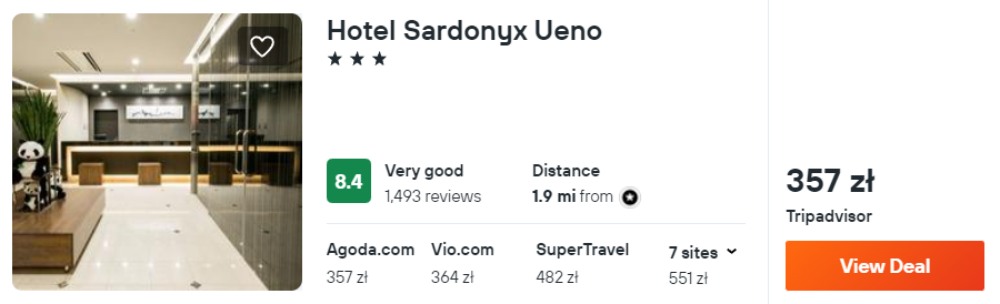 W Tokio zatrzymaj się w 3* hotelu Sardonyx Ueno. Do twojej dyspozycji zostanie oddany pokój z prywatną łazienką i dostępem do WiFi.