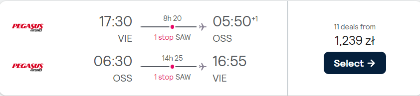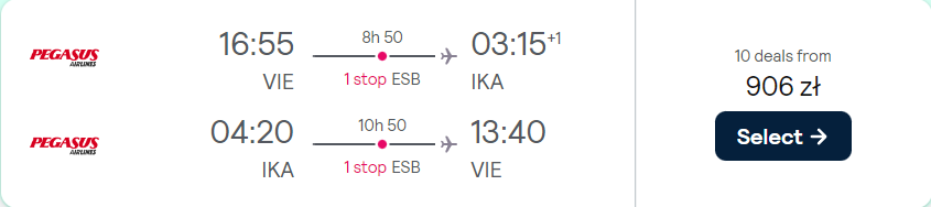 Do Iranu, Iraku i Kirgistanu polecisz z Berlina i Wiednia w okresie pomiędzy kwietniem a lipcem. Podróżować będziesz na pokładzie samolotów linii lotniczej Pegasus Airlines z bezpiecznymi przesiadkami na lotnisku w Stambule lub Ankarze. Bez dodatkowych opłat możesz zabrać ze sobą bagaż podręczny.