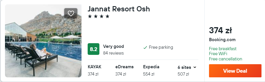 Natomiast w miejscowości Osh wybierz 4* hotel Jannat Resort. W cenę zakwaterowania wliczono codzienne śniadania.