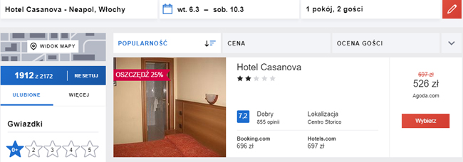 Sprawdźcie ceny hoteli w Neapolu. Hotel Casanova wydaje się być dobrym wyborem: