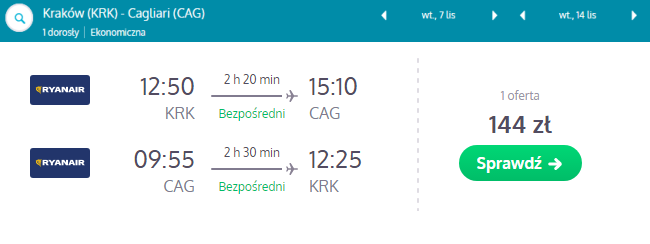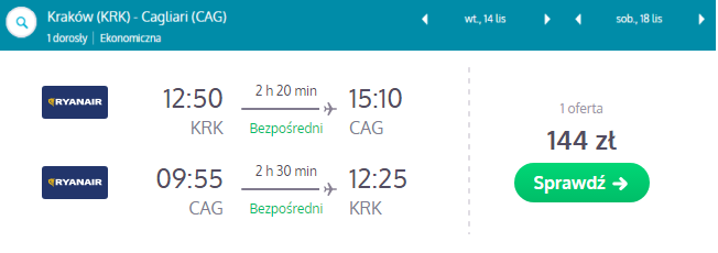 Przeloty dostępne są dla wszystkich (niepotrzebne są kluby zniżkowe). Do Cagliari podróżujecie z bagażem podręcznym o wymiarach 55 x 40 x 20 cm.