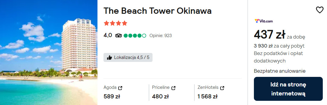 Możesz także zatrzymać się w 4* hotelu The Beach Tower Okinawa, który położony jest tuż przy plaży Sunset. Na terenie całego obiektu będziesz mieć zapewniony dostęp do sieci WiFi. Dla hotelowych gości dostępny jest także bezpłatny parking.