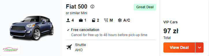 Za loty w dwie strony i wynajem auta zapłacicie w sumie 110 PLN za osobę, przy 2 podróżujących.