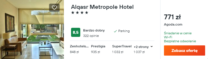 Za loty oraz zakwaterowanie w 4* hotelu ze śniadaniami zapłacisz tylko 540 PLN za osobę, przy 2 podróżnych śpiących w jednym pokoju.