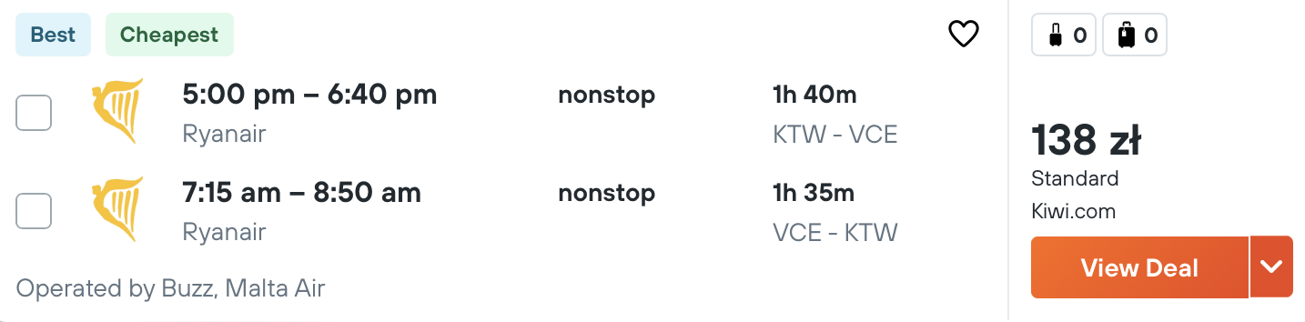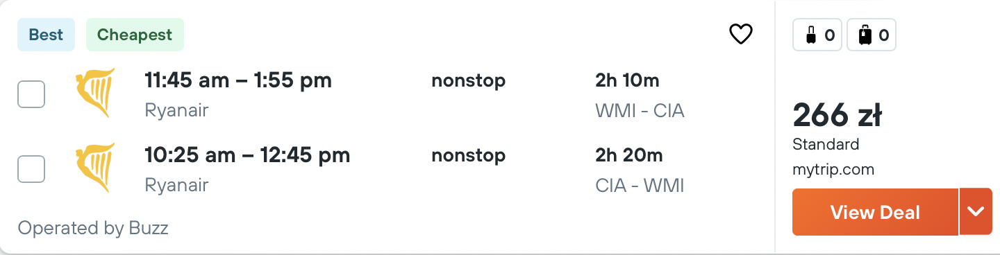 Do Londynu, Wenecji, Bergamo, Rzymu, Rygi, Sztokholmu, Kopenhagi i Budapesztu podróżować będziecie na pokładach samolotów linii Ryanair z wliczonym małym bagażem podręcznym.