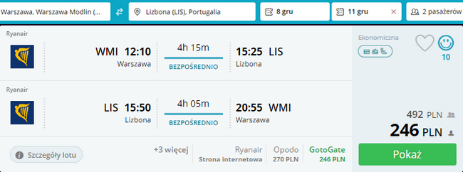 - Loty do Lizbony za 492 PLN/2 os. (246 PLN/os.)
