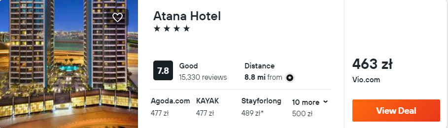 Może chcesz spędzić ten czas w Dubaju? W takim razie postaw na pobyt w 4* hotelu Atana, który znajduje się nieopodal centrum handlowego Mall of the Emirates Na jego terenie mieści się dobrze wyposażone centrum fitness oraz odkryty basen z tarasem słonecznym.