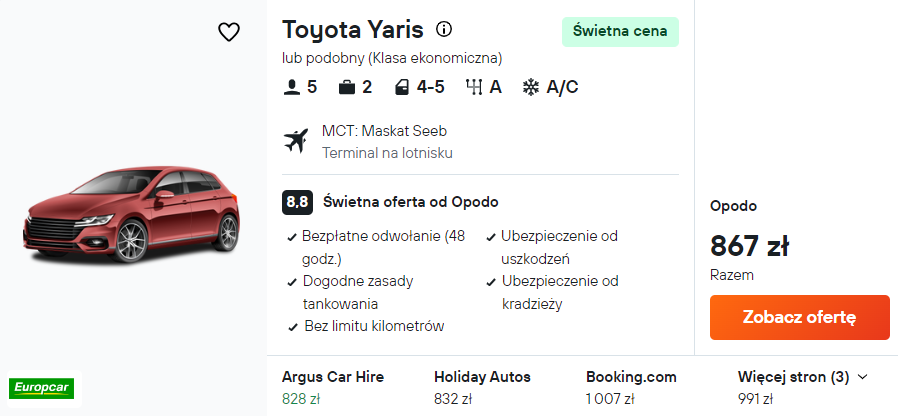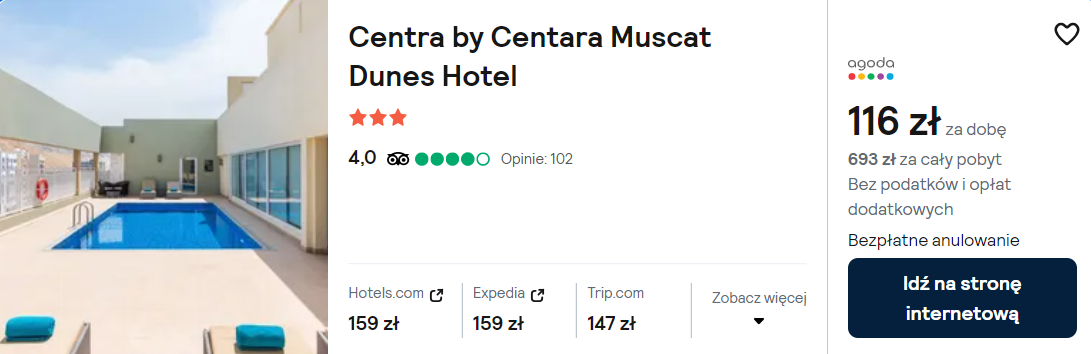 Podróż ta składa się z dwóch niezależnych rezerwacji przelotów na trasach Katowice-Abu Zabi-Katowice oraz Abu Zabi-Maskat-Abu Zabi.