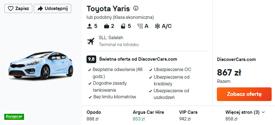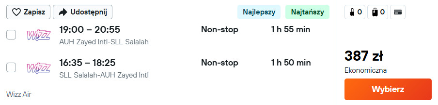 Na wakacyjny wyjazd wyruszysz z Krakowa. Pierwszym przystankiem w podróży będzie Abu Zabi, a następnym Salala, w Omanie. Wszystkie loty są bezpośrednio i odbędziesz je linią Wizz Air. Bilety w najniższej cenie dostępne są dla wszystkich chętnych. Do ich zakupu nie potrzebujesz żadnych klubów zniżkowych.