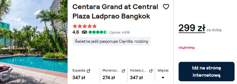 Jeżeli cenisz sobie najwyższy standard, postaw na 5* hotel Centara Grand. Do twojej dyspozycji będzie komfortowy, klimatyzowany pokój z bezpłatnym WiFi. Dodatkowo w obiekcie znajdziesz między innymi kawiarnię, basen oraz siłownię.