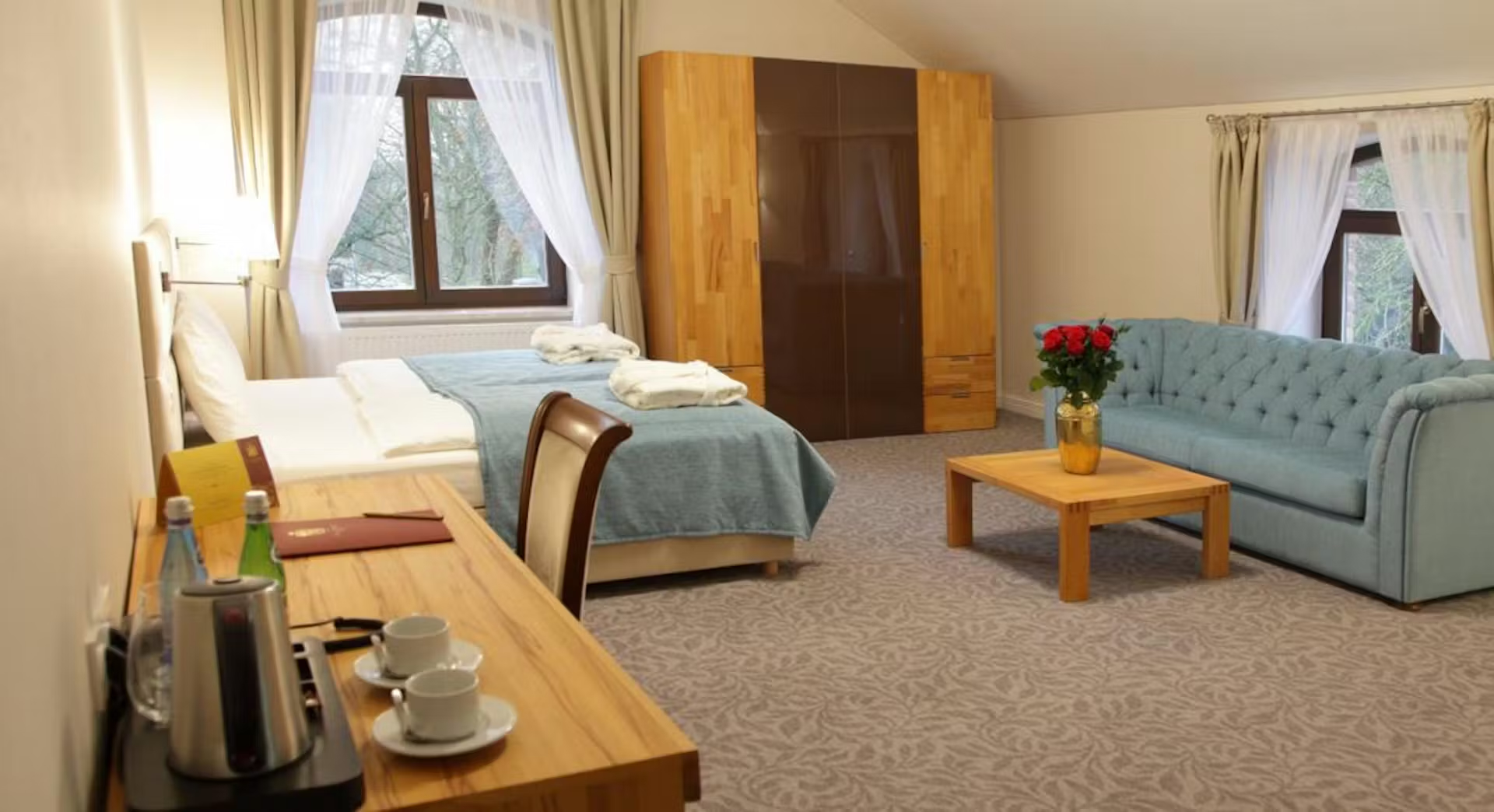 W cenie otrzymasz noclegi w komfortowym pokoju, który wyróżnia się oryginalnym wykończeniem oraz codzienne śniadania. W pakiecie otrzymujesz możliwość korzystania ze strefy wellness: basenu, jacuzzi, łaźni parowej i sauny.