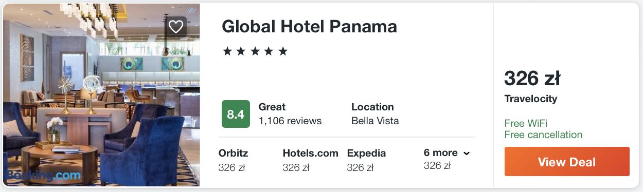 Wolicie postawić na luksus z prawdziwego zdarzenia? Zatem wybierzcie 5* Global Hotel Panama – wyróżnia się on doskonałą obsługą, eleganckimi wnętrzami oraz klasycznie urządzonymi pokojami.