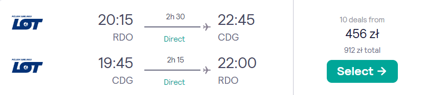 Do Francji udasz się na rozpoczęcie szkolnych wakacji, w terminie 23 – 26 czerwca (piątek – poniedziałek). Czeka cię bezpośredni lot z Radomia do Paryża, realizowany na pokładzie samolotu PLL LOT.