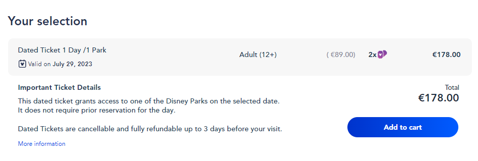 Bilety wstępu do Disneylandu kupisz na oficjalnej stronie parku. W tej chwili najtańsze wejściówki na 29 lipca dostępne są od 89 EUR/osoba dorosła (ok. 398 PLN/osoba)